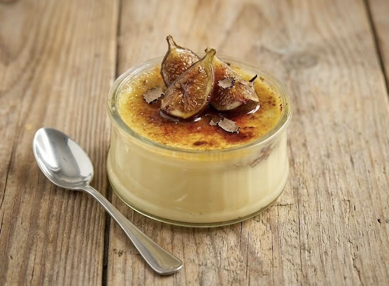 Crème brûlée au foie gras, figues rôties à l’huile de truffe